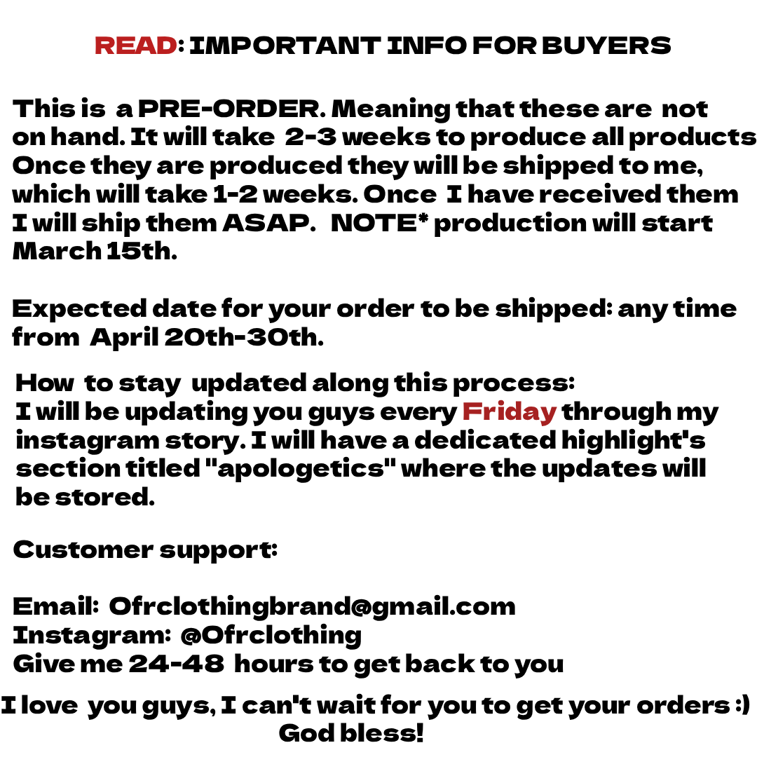 - This is a PRE-ORDER. Meaning they are not on hand. Please allow 2-3 week for production. And one week for shipping. Production starts March 15th.