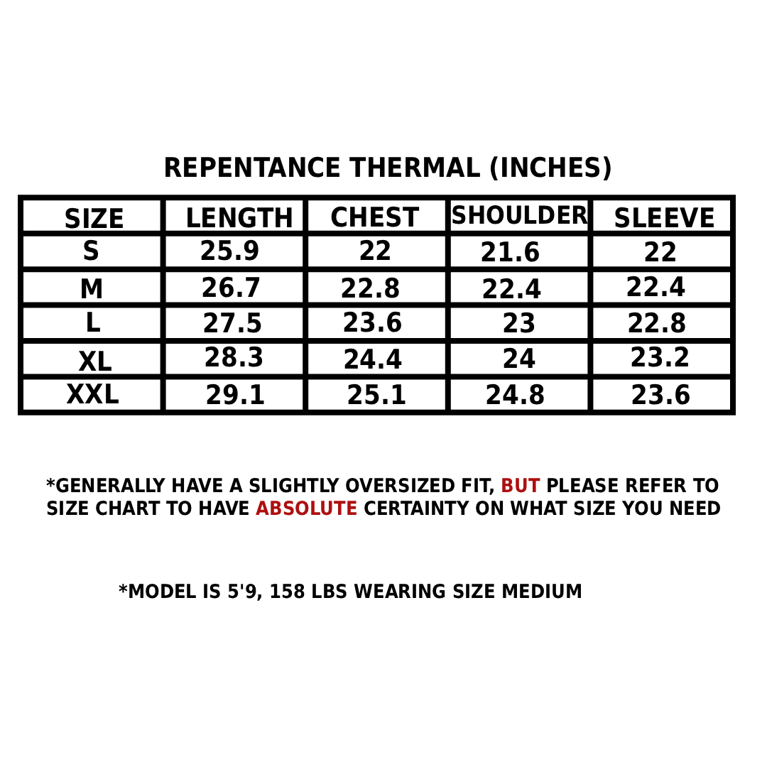 Size chart on the last slide